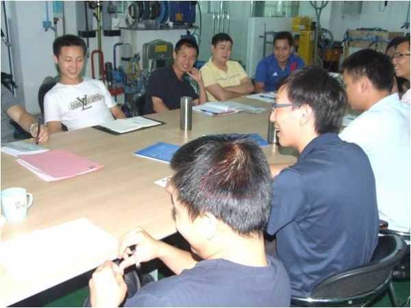 各個區(qū)域的業(yè)務(wù)代表作出了當(dāng)?shù)厥袌龅哪曛袖N售額總結(jié) 今年與上年同期的銷售額的對比 龍神業(yè)務(wù)代表們認(rèn)真地聽蘇經(jīng)理分析2010年下半年汽車市場的走勢 龍神業(yè)務(wù)代表、各部門間的交流 部門間輕松的交流氣氛渲染了整個會議室