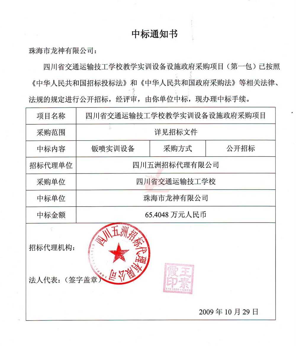 [喜訊]熱烈祝賀龍神成功中得四川省交通運(yùn)輸技工學(xué)校標(biāo)